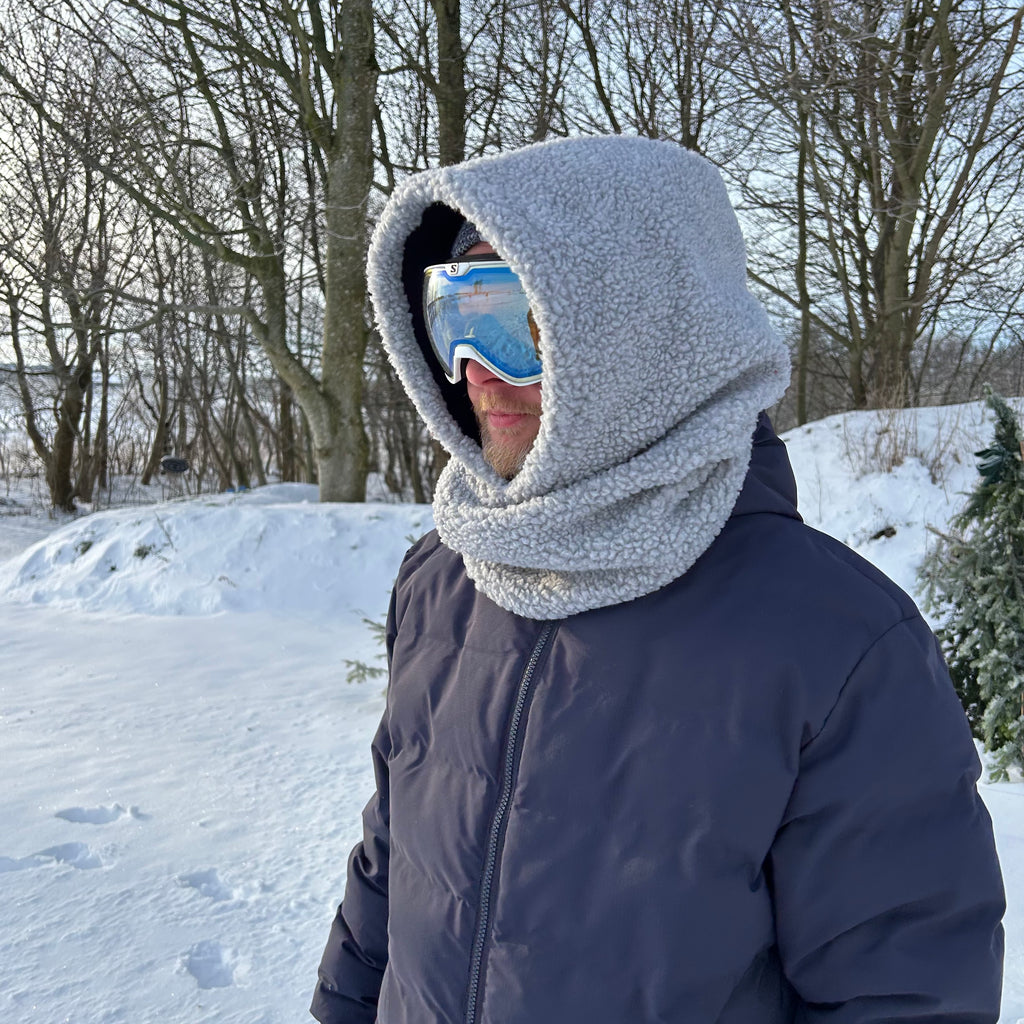 Balaclava i lysegrå Teddy med sort fleece.