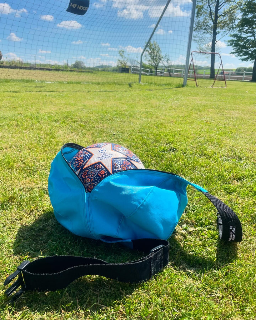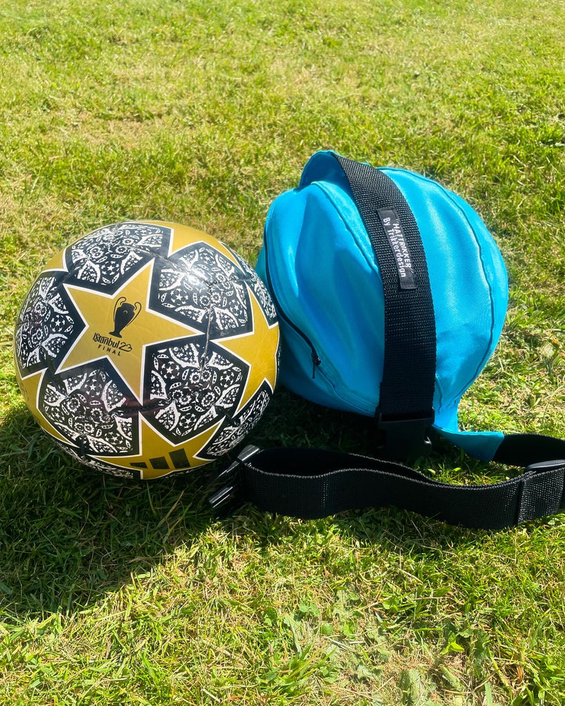 Super smart fodboldtaske. Fodboldtasken er eget design og lavet med det formål, at barnet kan have frie hænder på vej til de grønne baner. Fodbolden er ofte yderst vanskelig, at transportere på cyklen eller over gader og stier. Her er fodboldtasken også smart. Lig fodbolden i tasken, lyn lynlåsen, sving fodboldtasken over skulderen og spænd.
