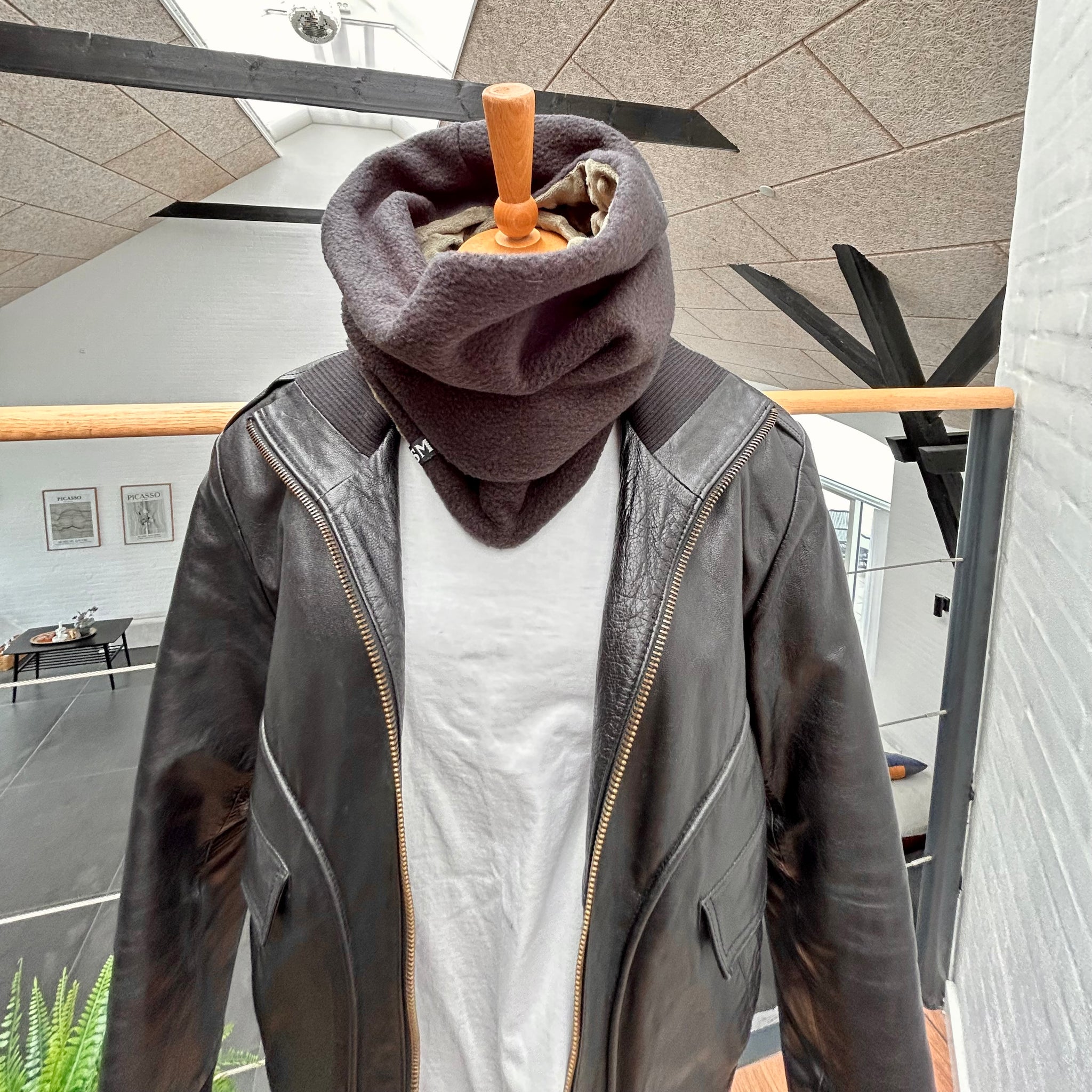Bagsiden er beklædt med sort fleece, men halsedissen kan vendes, så dette også vender ud af.