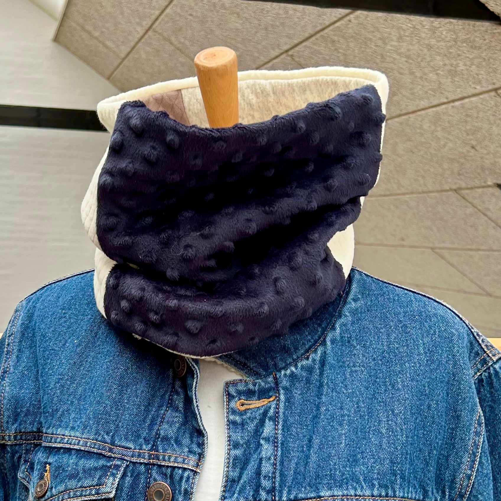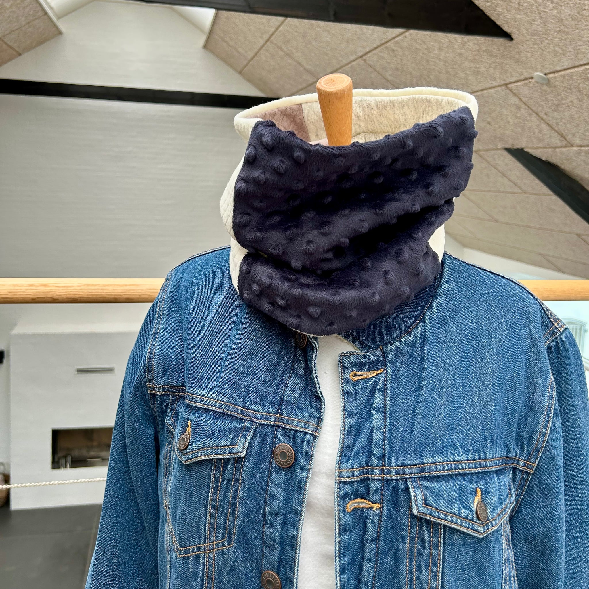 Lækker og vamset Halsedisse med forskellige farver. Kan vendes så du får flere udtryk i en og samme Halsedisse. Denne vare vil kun blive produceret i en udgave. Unika produkt.