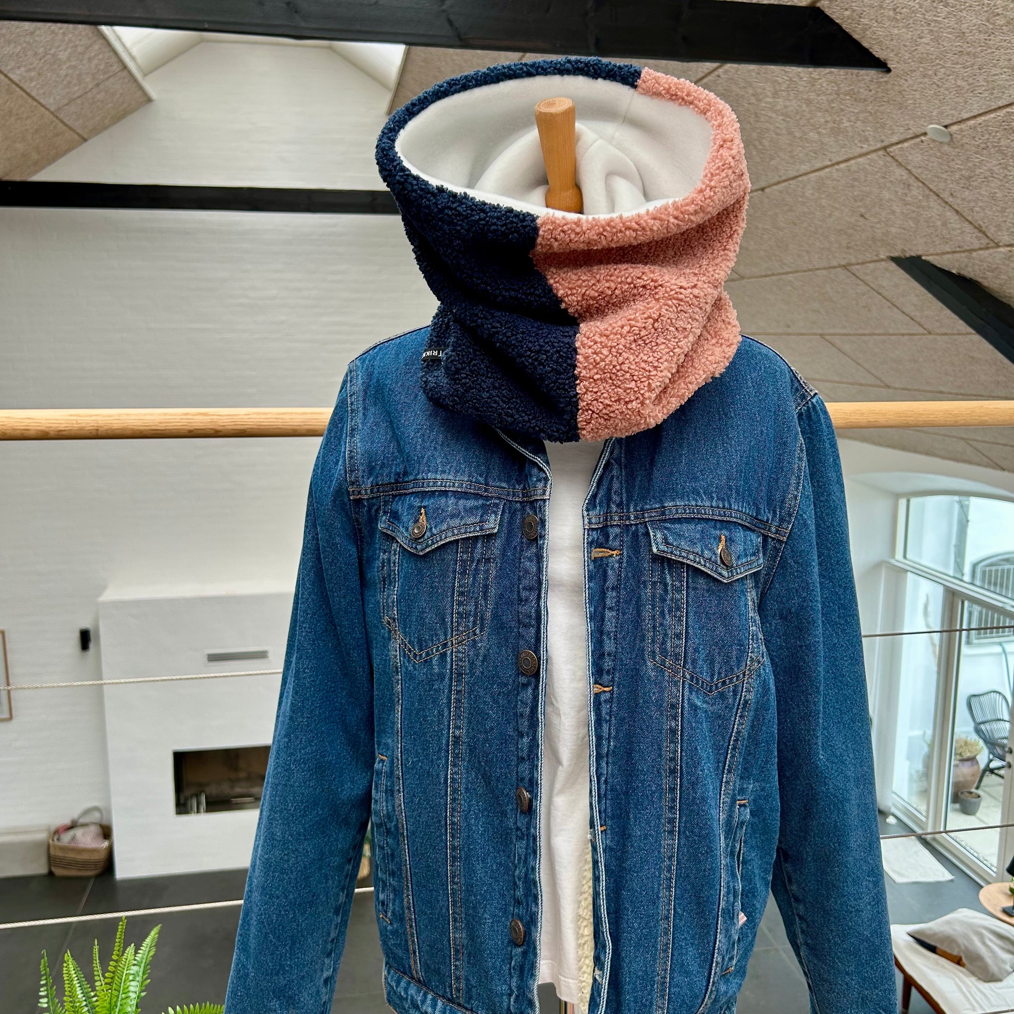 Lækker og blød teddybear Halsedisse i rosa og mørkeblå.