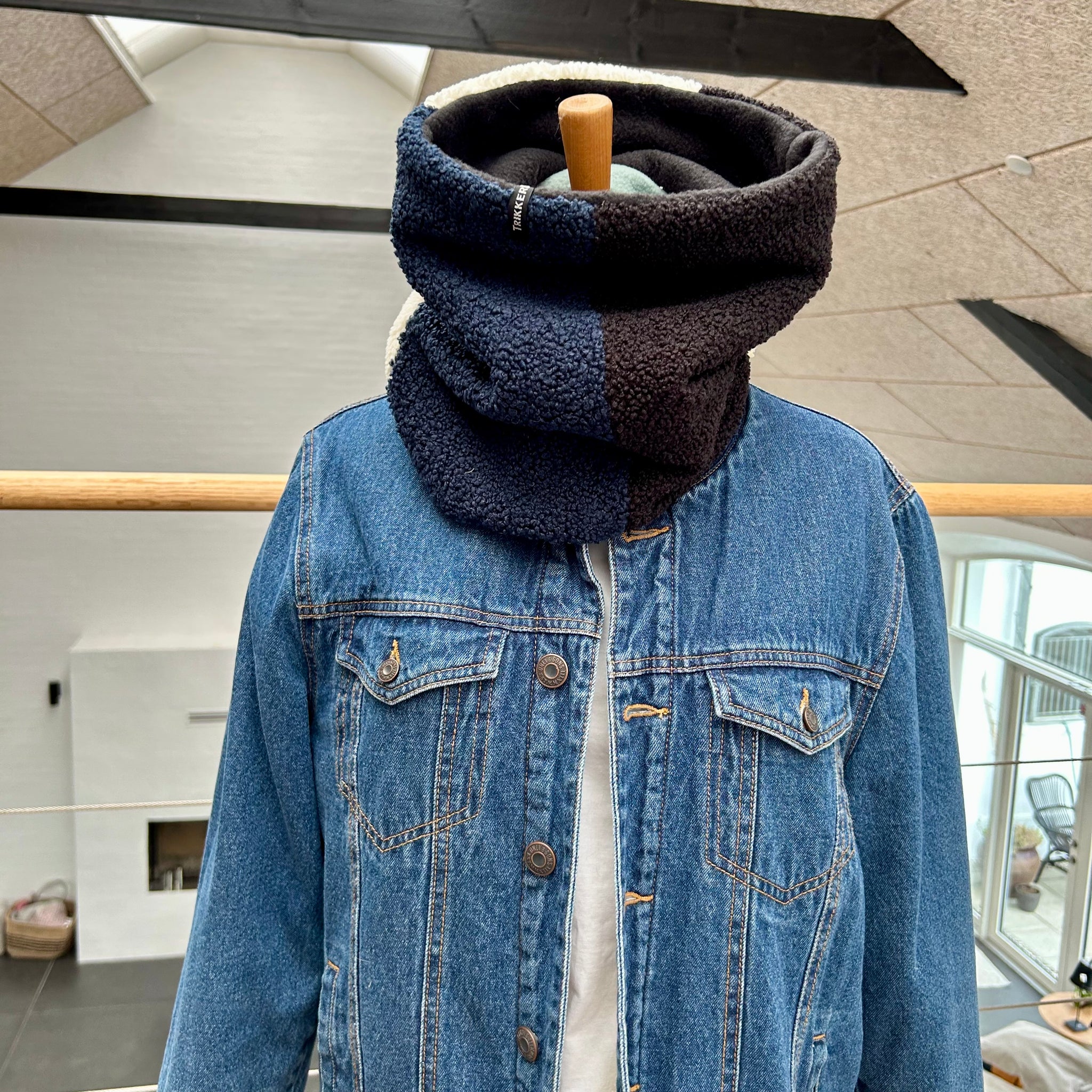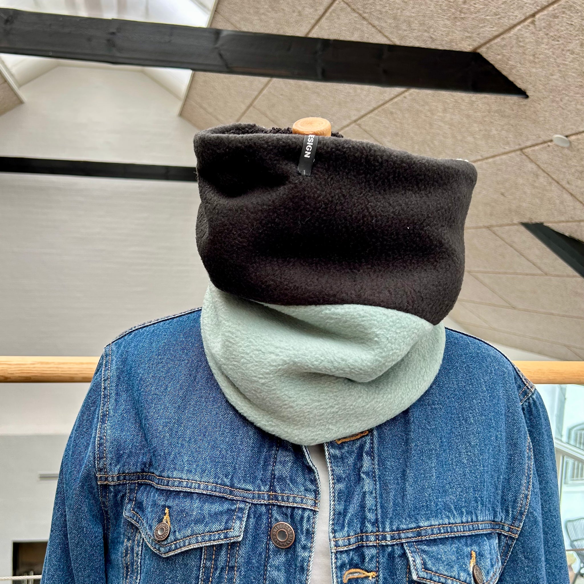 Bagsiden er beklædt med blødt sort fleece, men halsedissen kan vendes, så dette vender ud af.