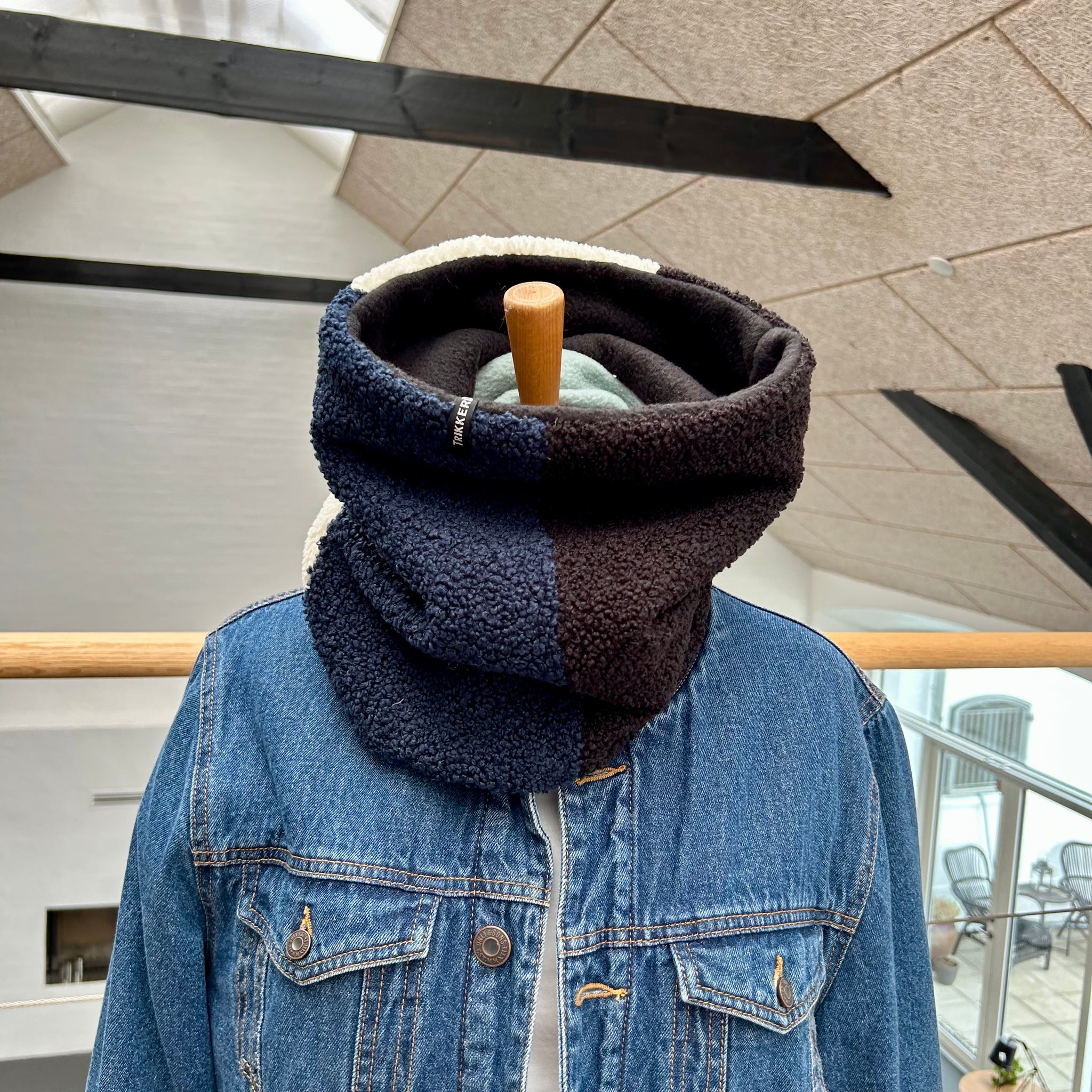 Lækker og blød teddybear Halsedisse i råhvid, sort og mørkeblå.
