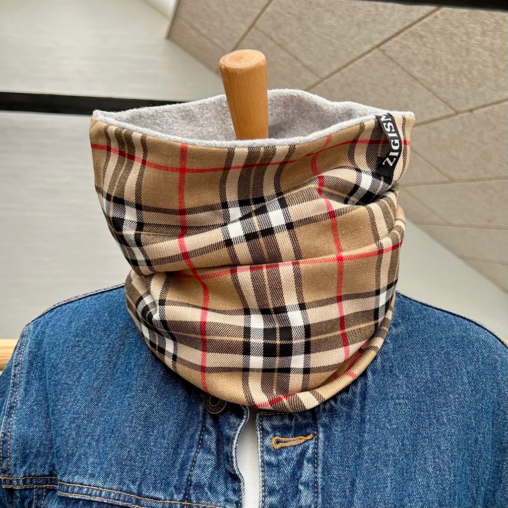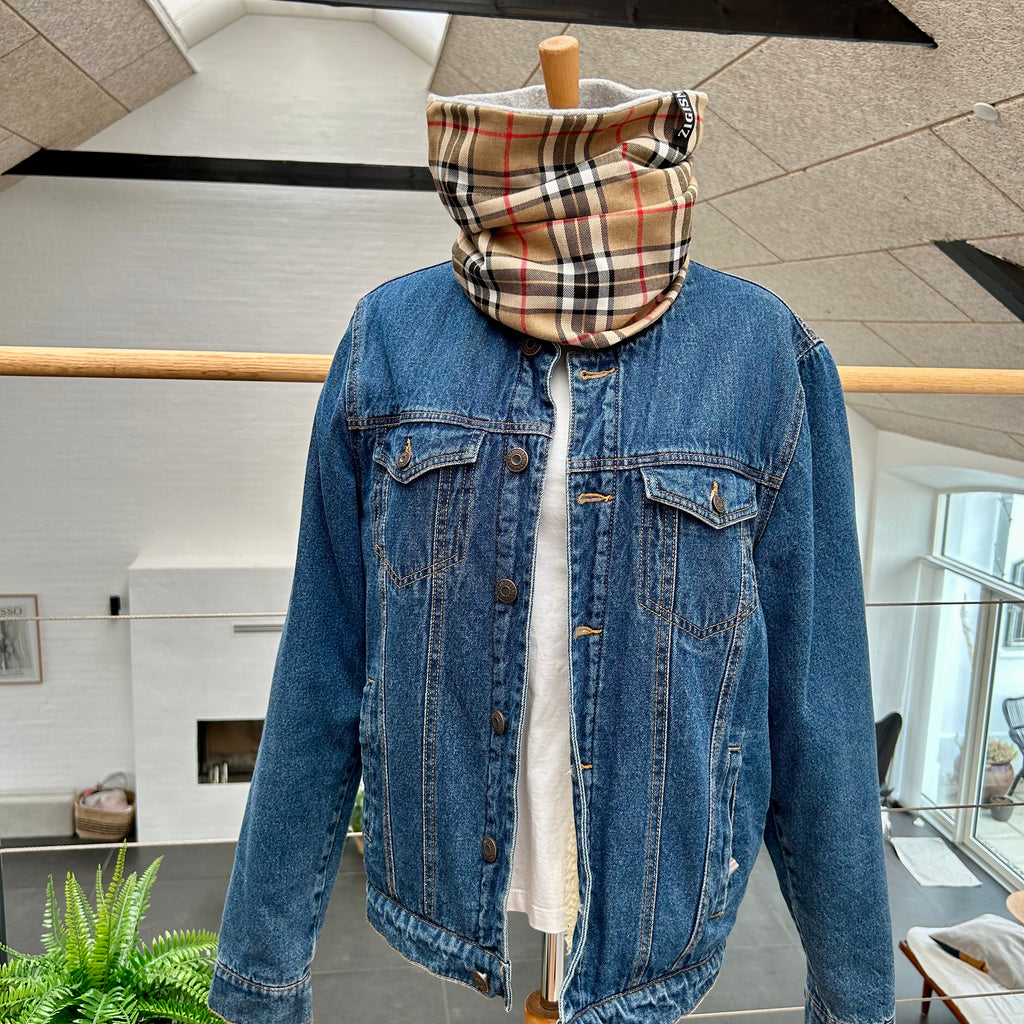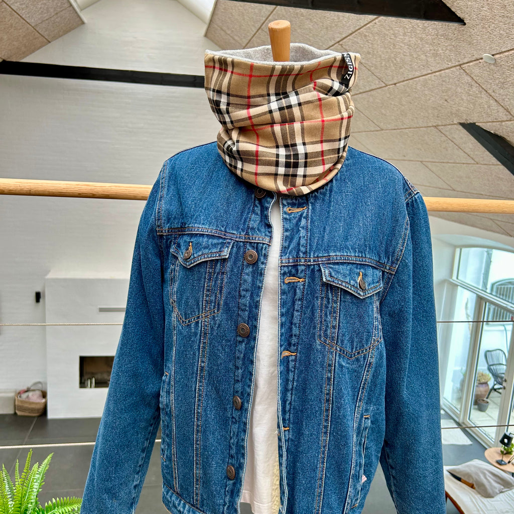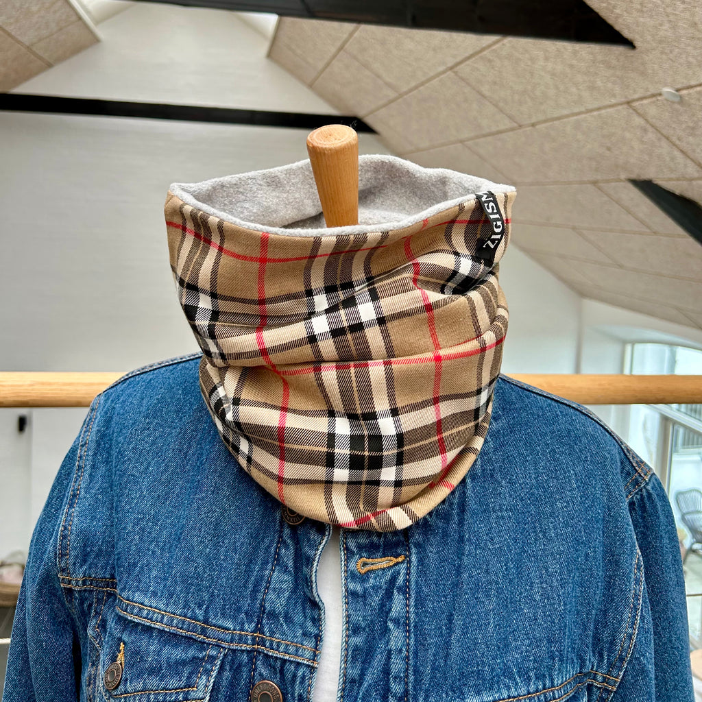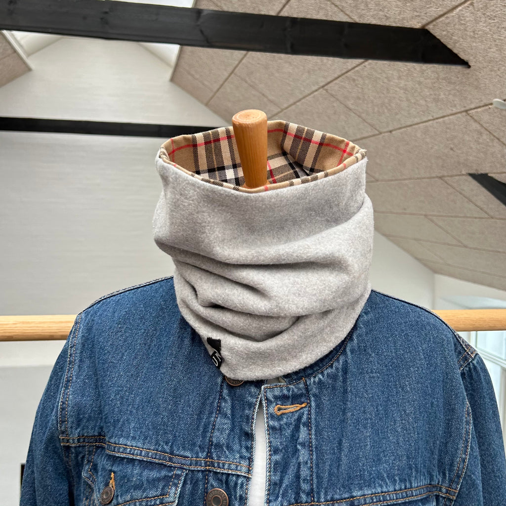 Skøn unika Halsedisse i tern og med to slags gråt fleece indeni.