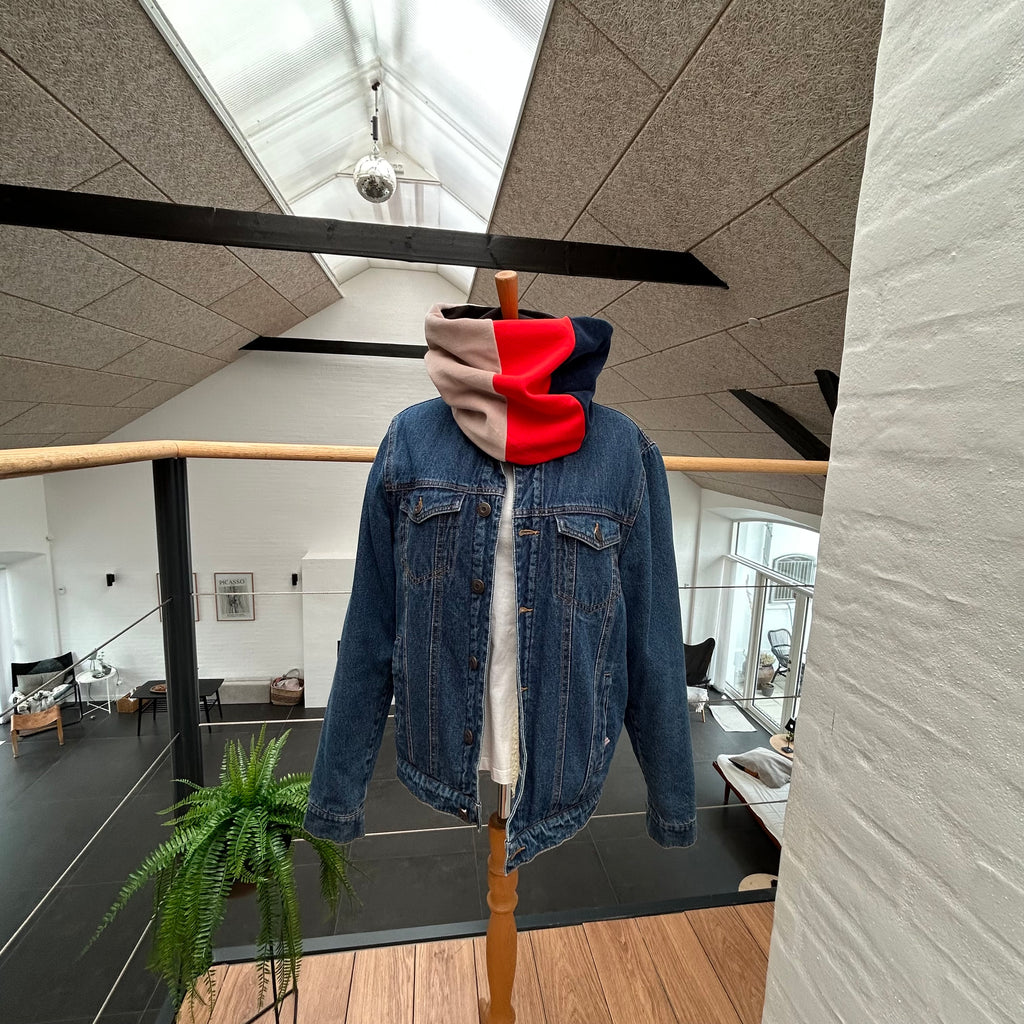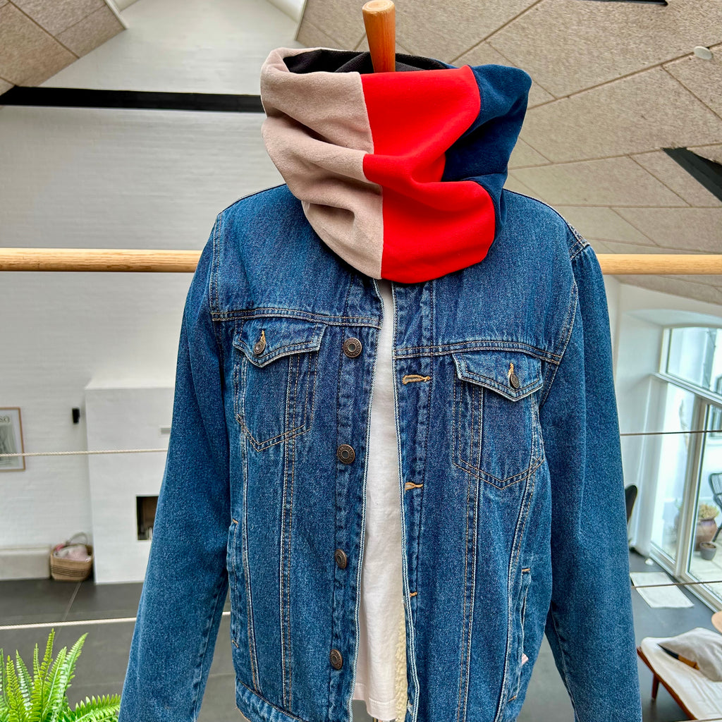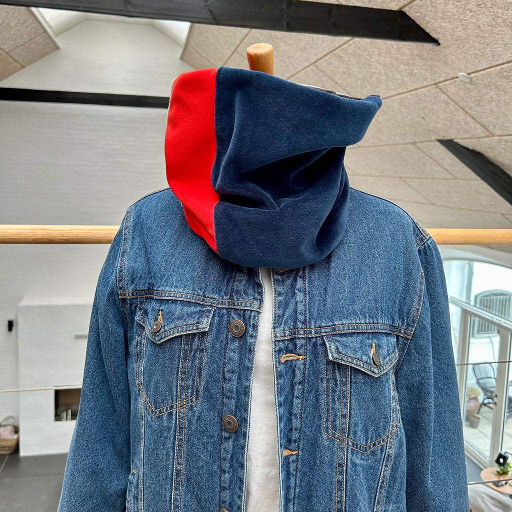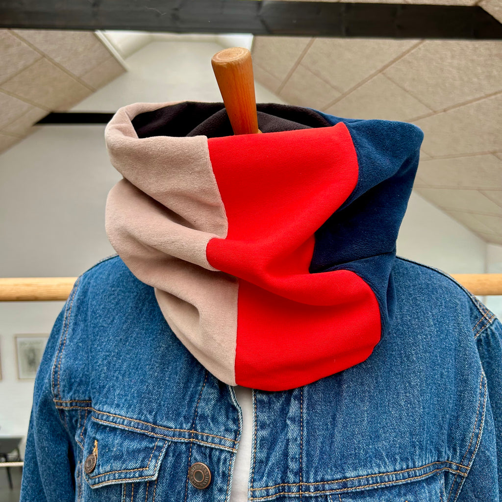Lækker halsedisse i rød jersey og blå/nude velour. - TrikkerDesign