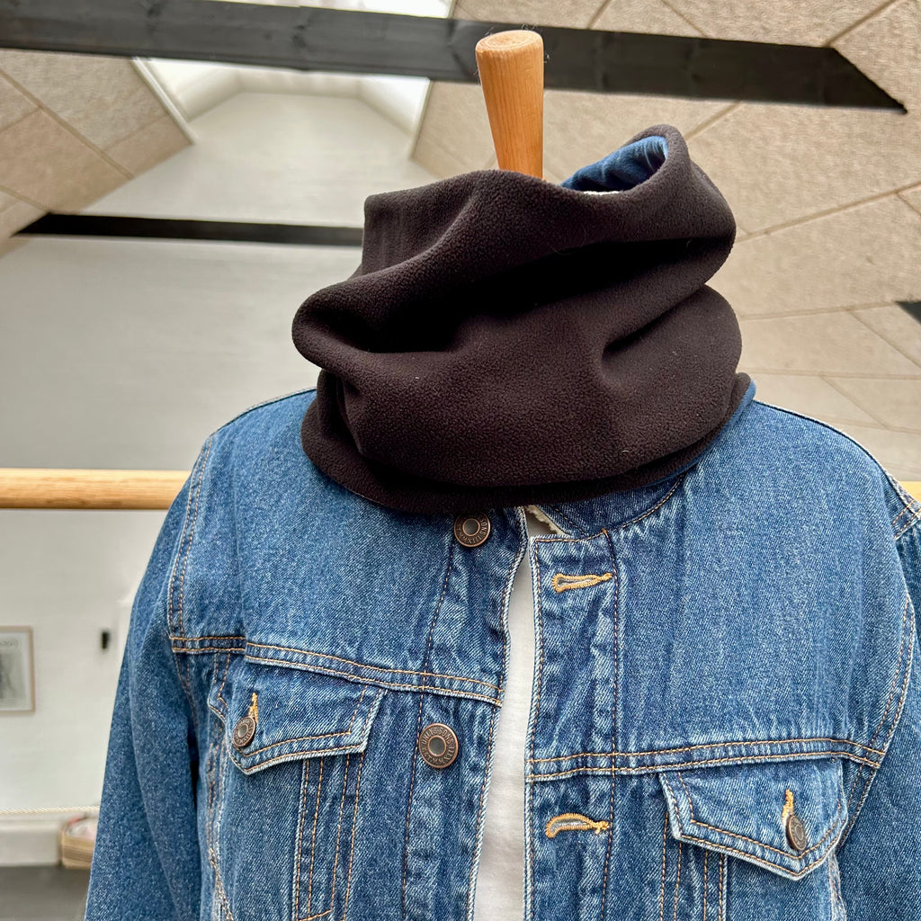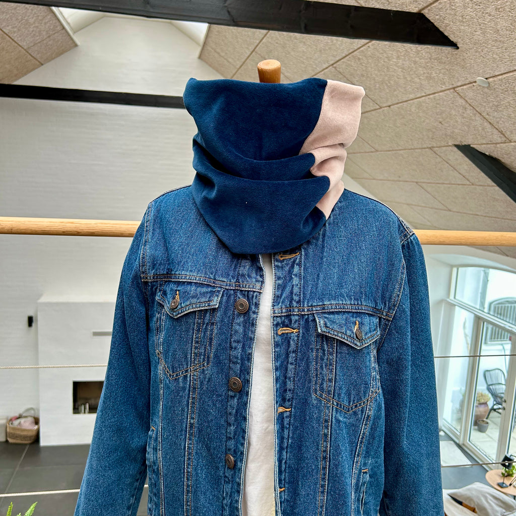 Skøn unika Halsedisse med blå og nude velour. Der er sat et stykke rødt jersey ind og bagsiden er i lækkert varmt fleece. Størrelse: One size. Bredde: 35 cm. Omkreds: 70 cm. Unika produkt.