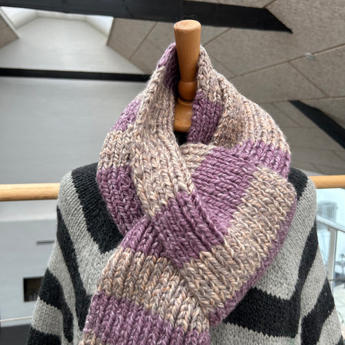 Håndstrikket jumbotørklæde i nude og meleret lilla