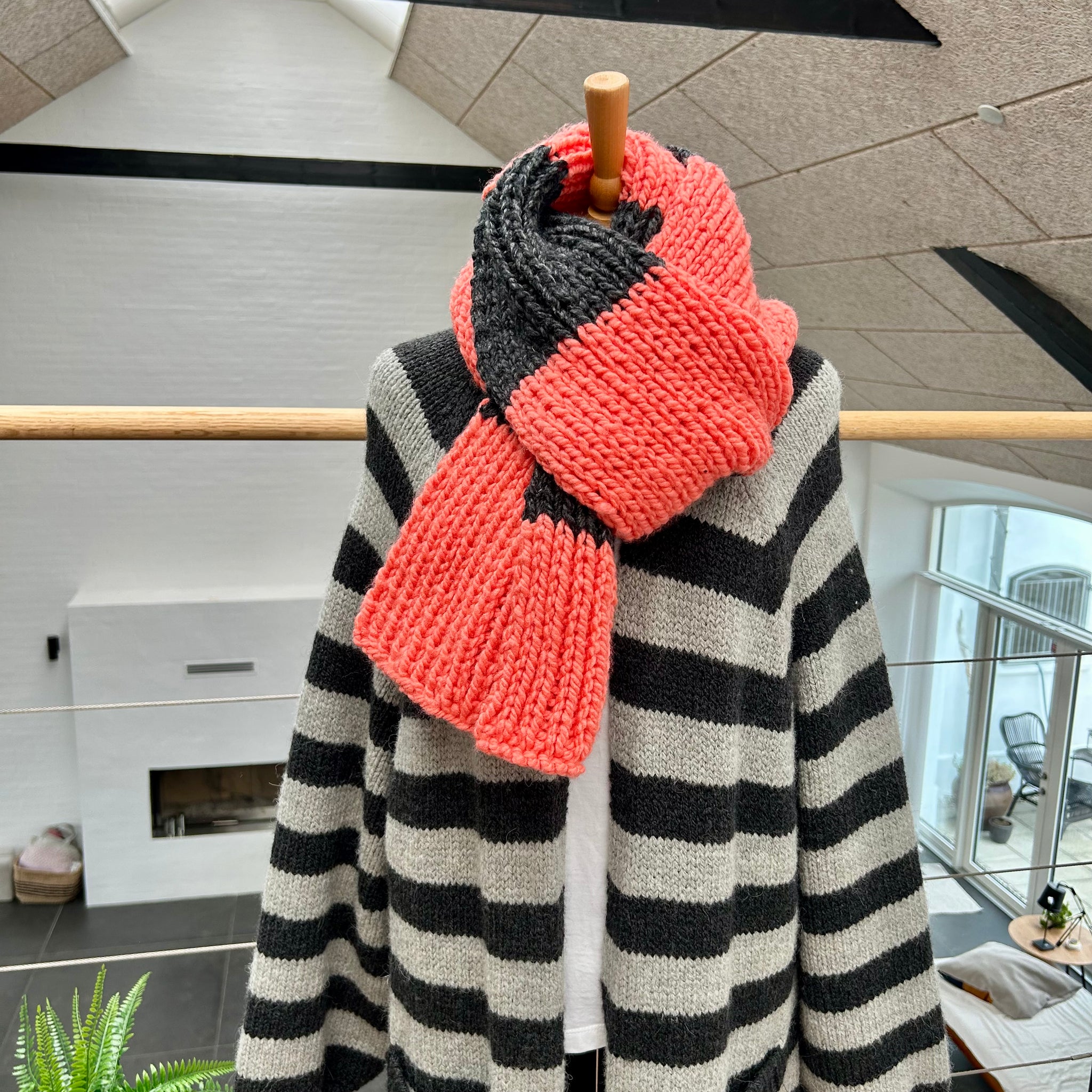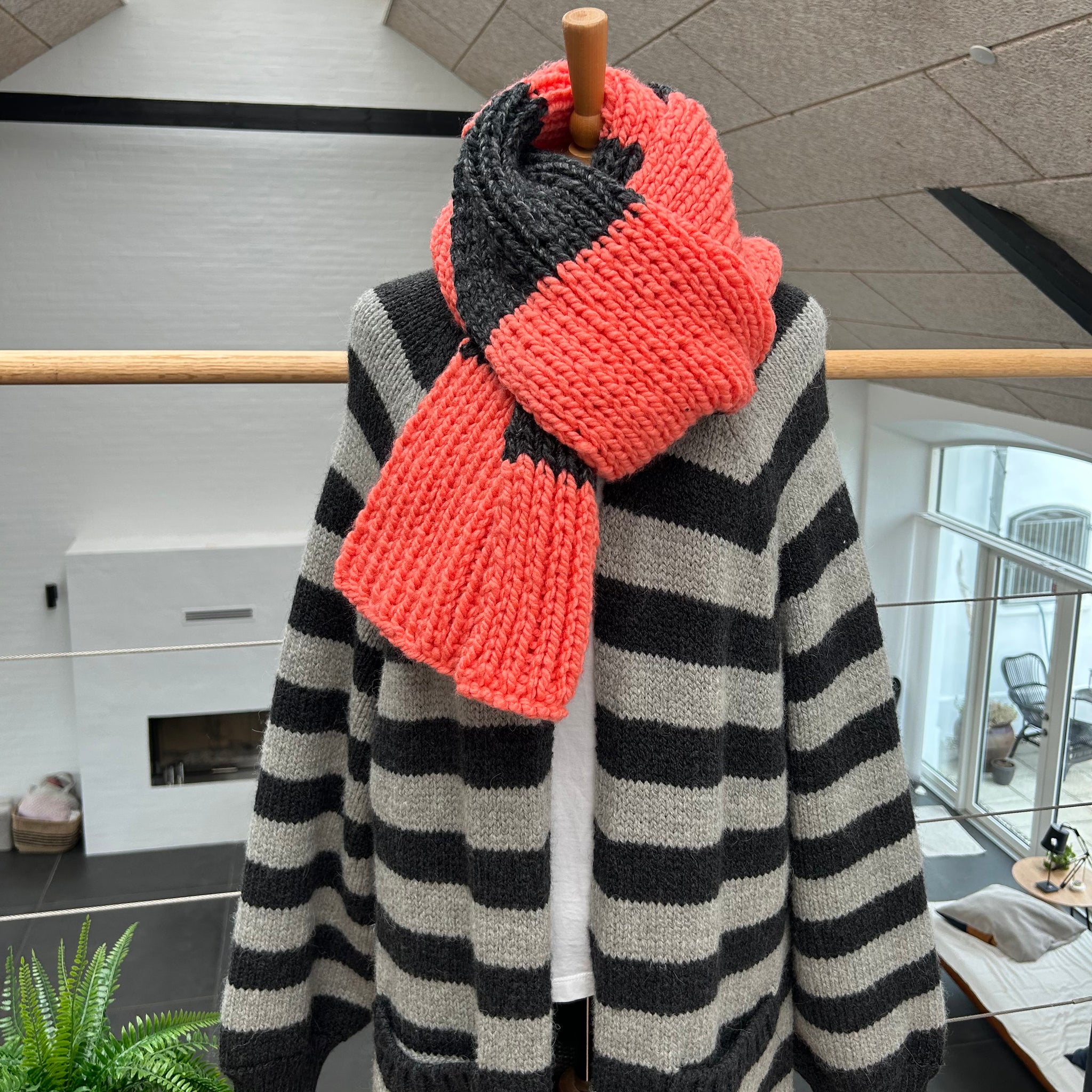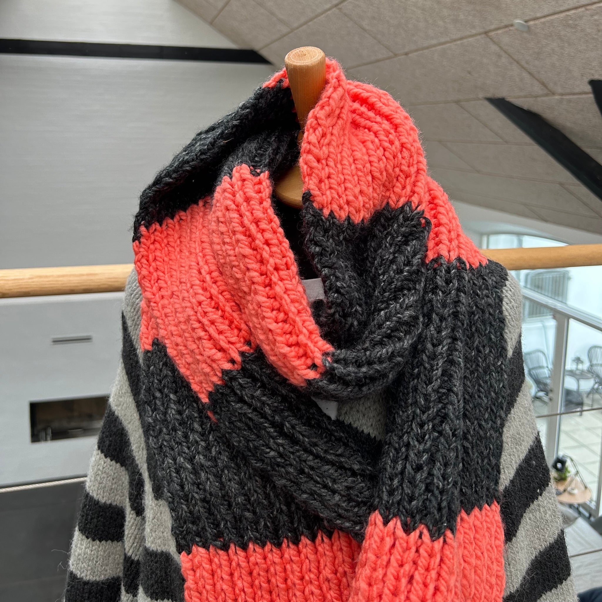 Der er lagt ca. 6 timer i dette hjemmestrikkede tørklæde.