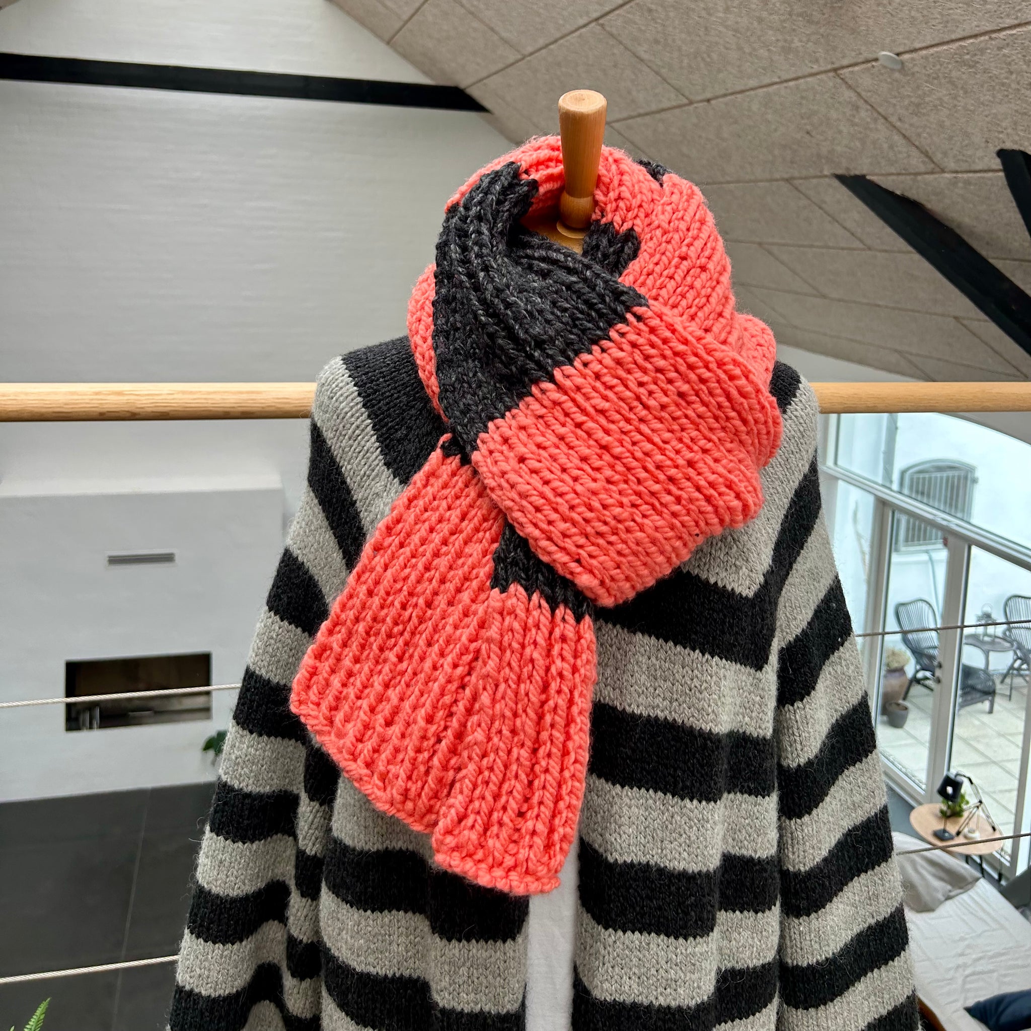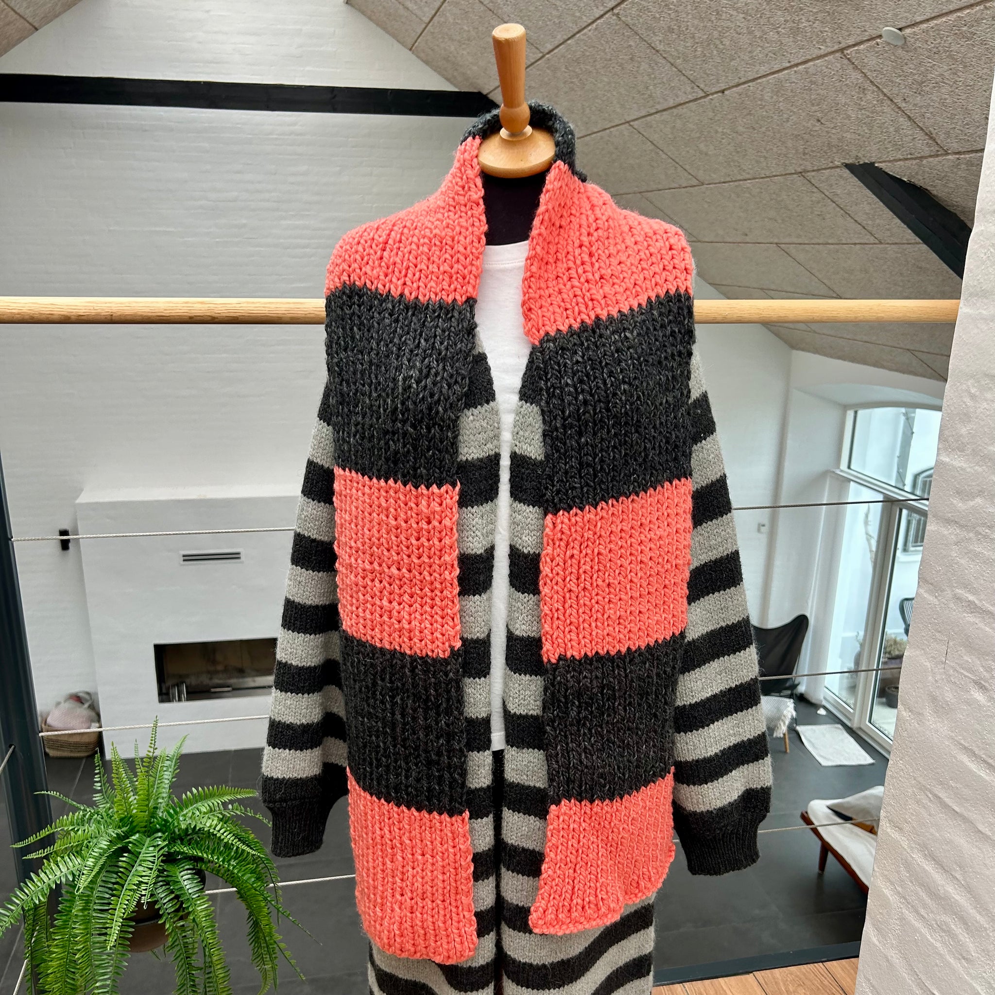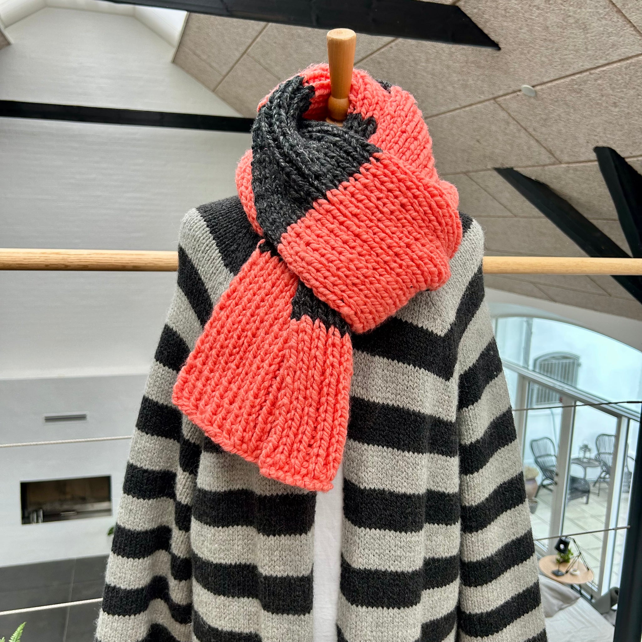 Der er lagt ca. 6 timer i dette hjemmestrikkede tørklæde.