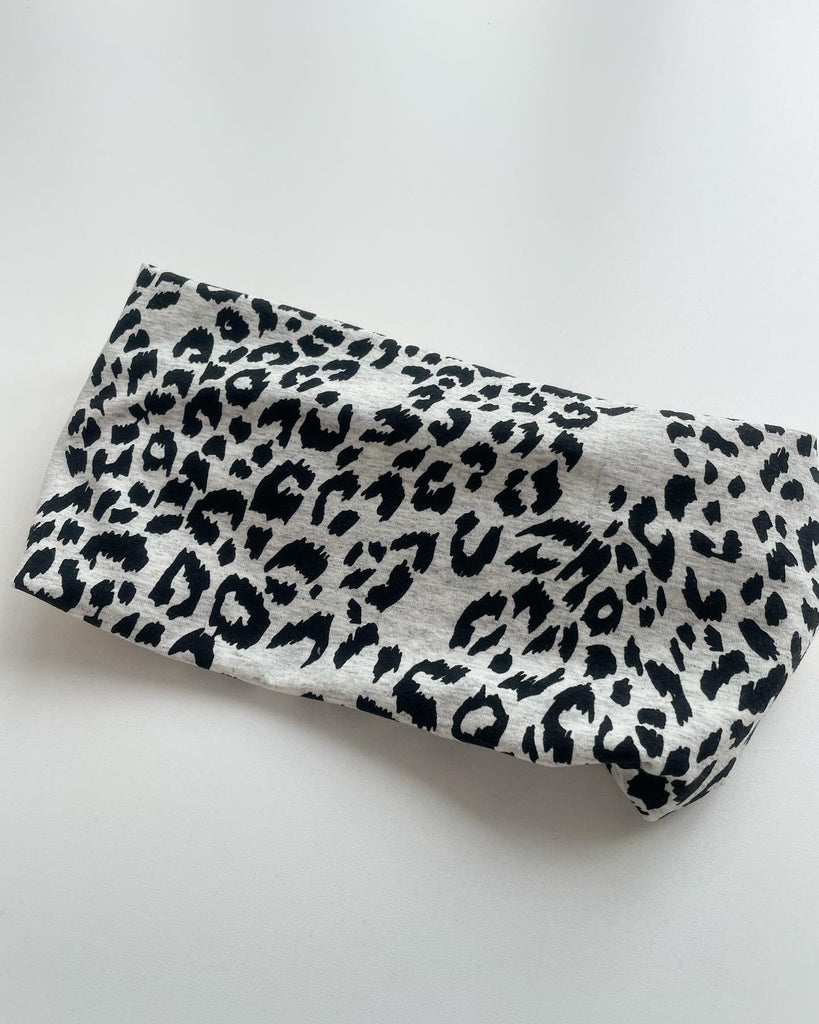 Lækkert pandebånd i gult fake fur med leo Stretch på bagsiden.
