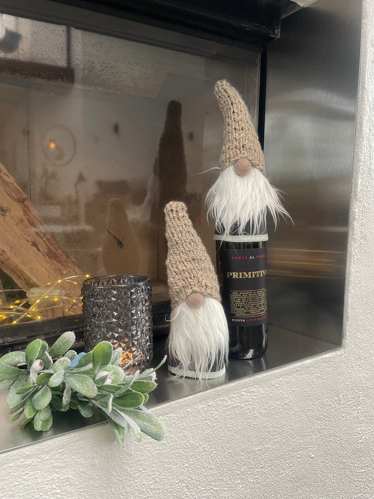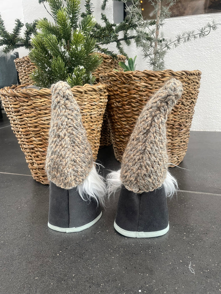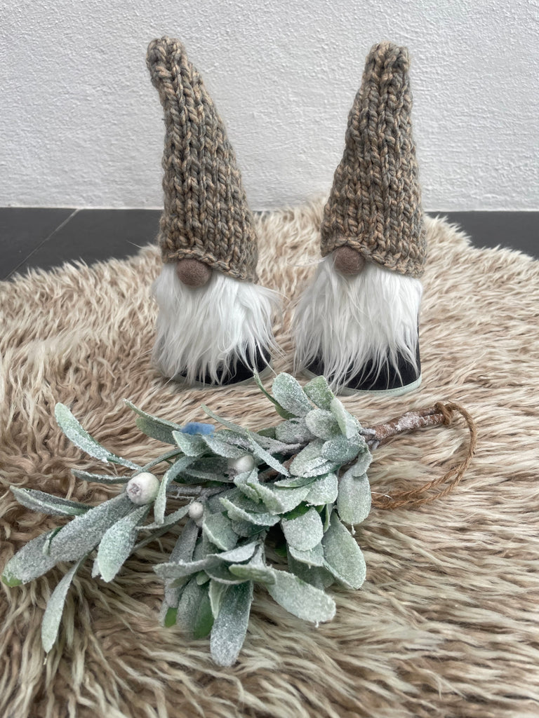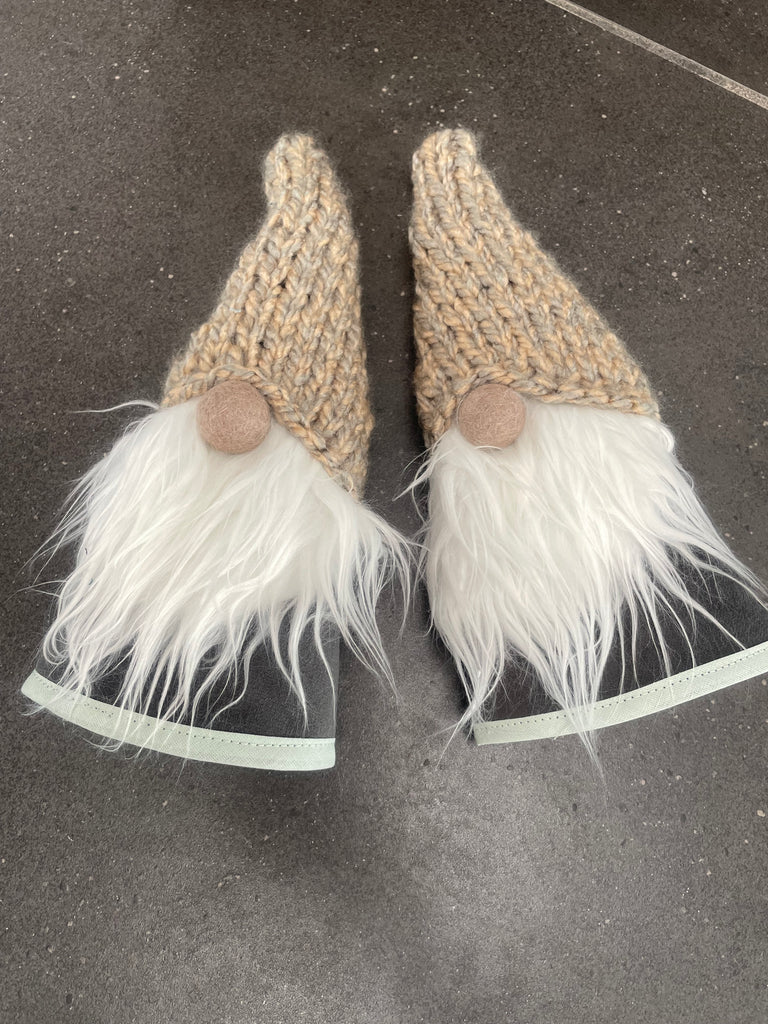 ❤️Håndlavede “Gnomer”i mørkegrå møbelvelour og hjemmestrikkede huer.