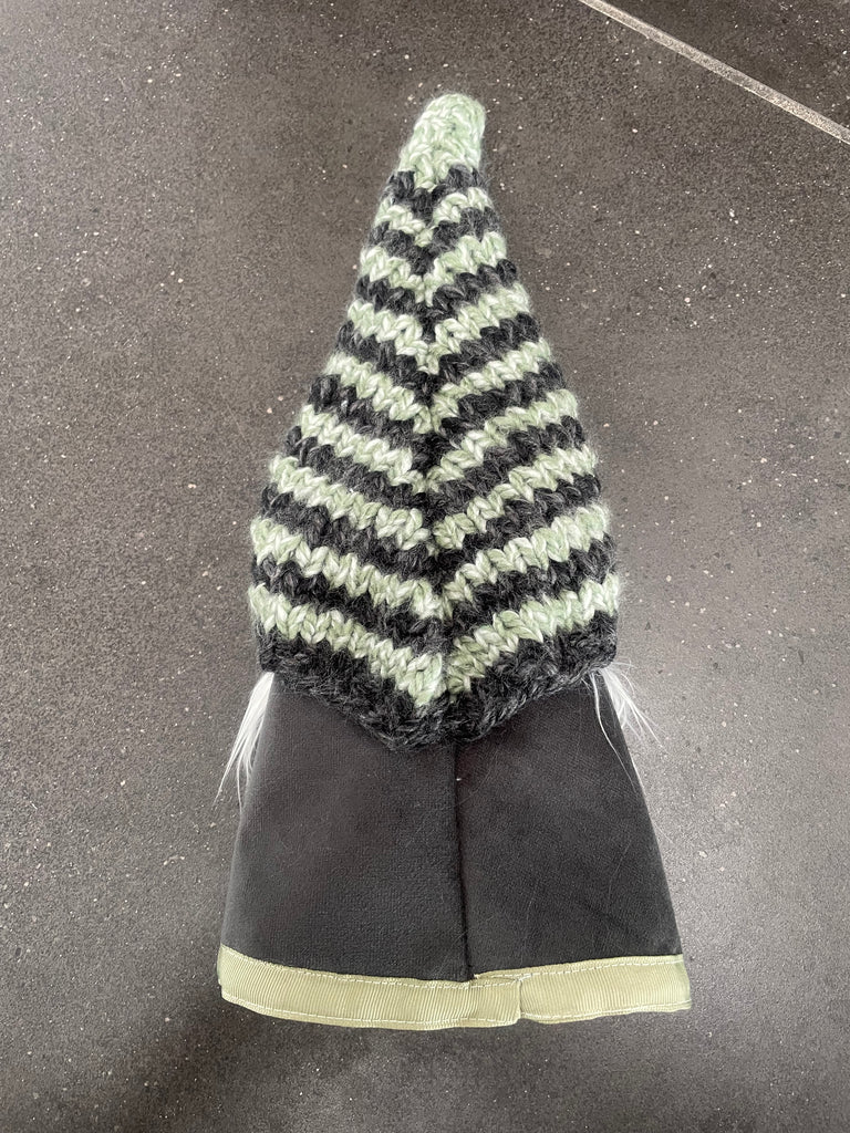 ❤️Håndlavet “Gnom” i gråt velour og med strikket hue.
