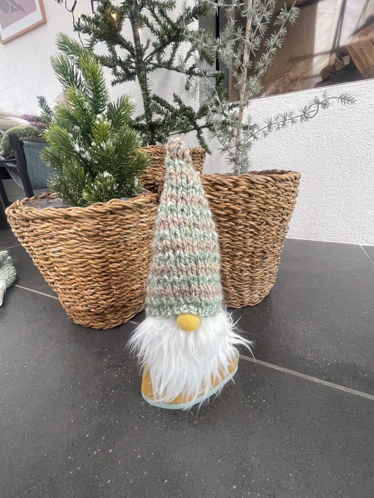 Jeg har håndlavet de her, som jeg kalder for “Gnomerne”. De bliver lavet af materialer, som jeg har tilovers fra de puder eller andre produkter jeg laver, så intet spildes. Hver nisse har sin egen unikke stil og personlighed. Mine håndlavede nisser er udstyret med detaljer som skråbånd og hjemmestrikkede huer. At lave nisser kan også være en sjov aktivitet for hele familien, hvor man kan eksperimentere med forskellige designs og materialer, men er du ikke til det, så køb den færdig hos mig.