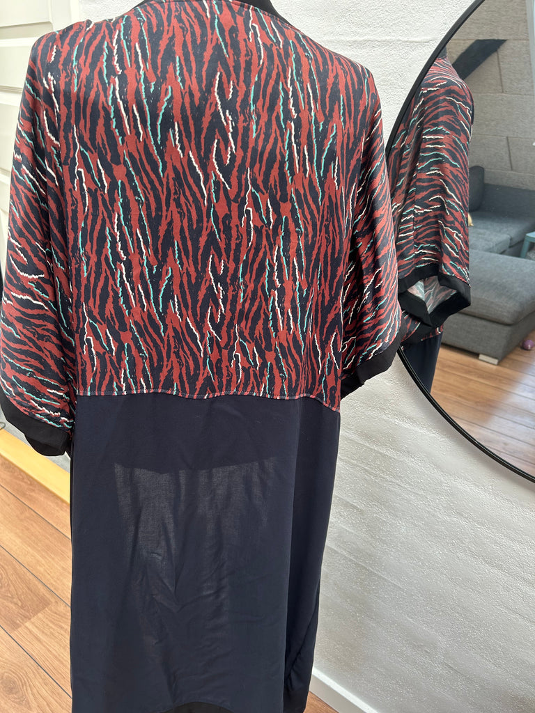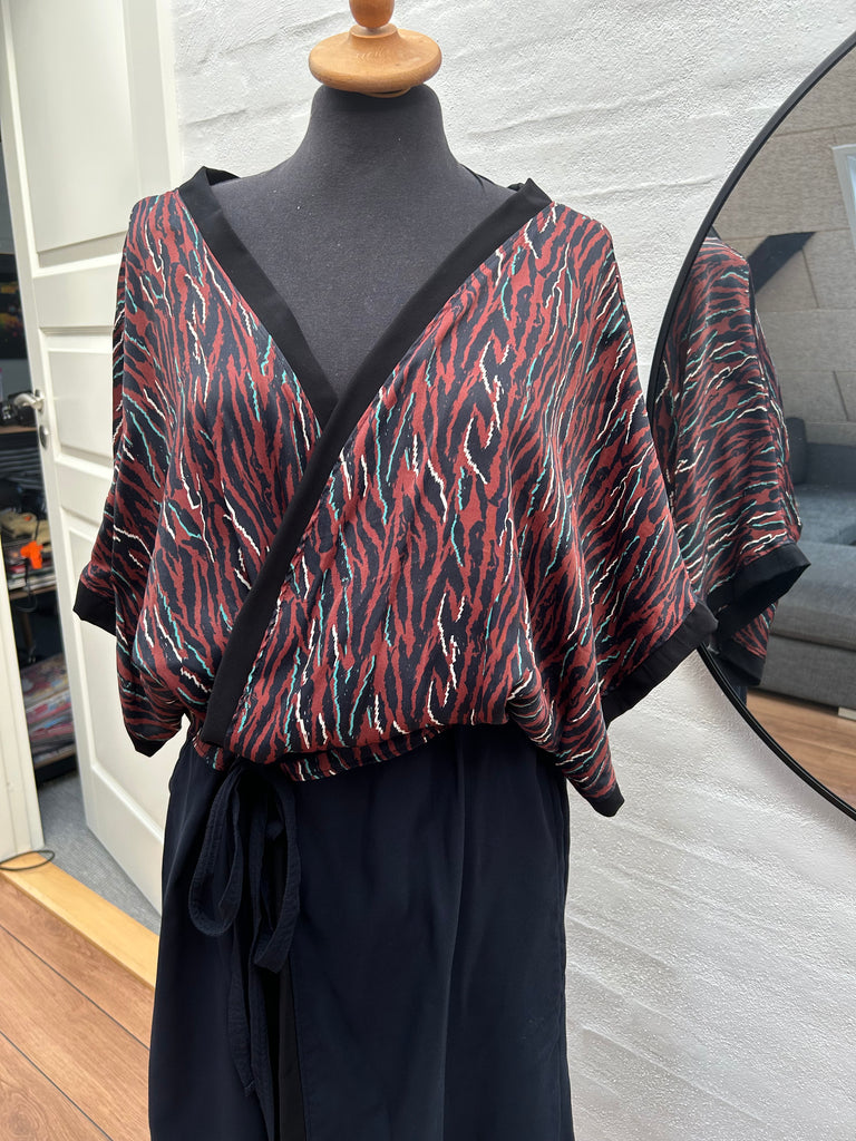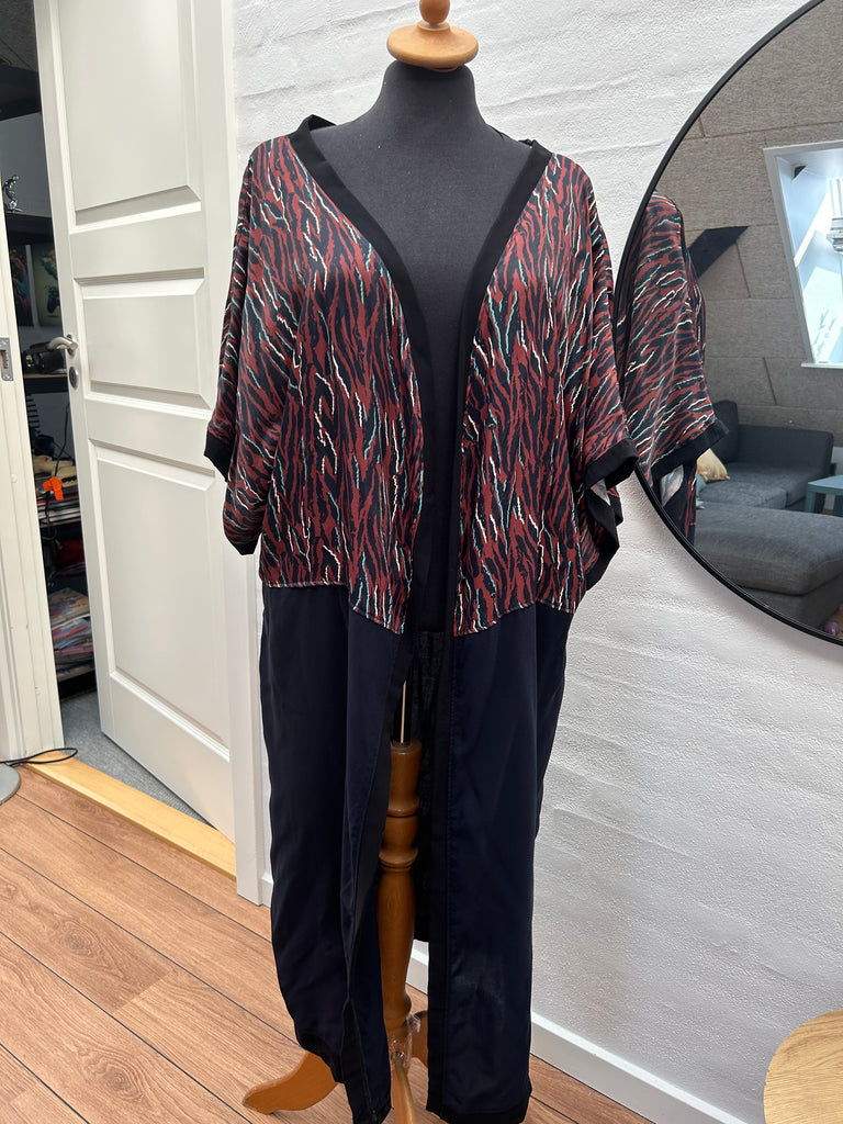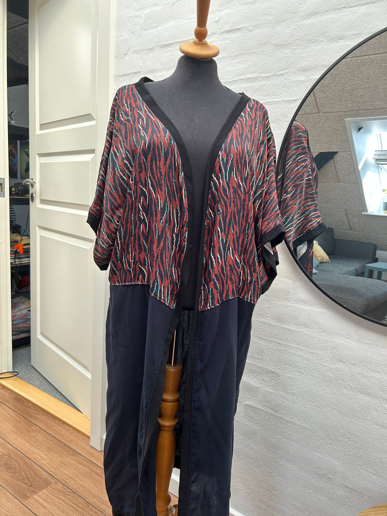 Kimono i digital printet stof og med mørkeblå viscose str.m/l