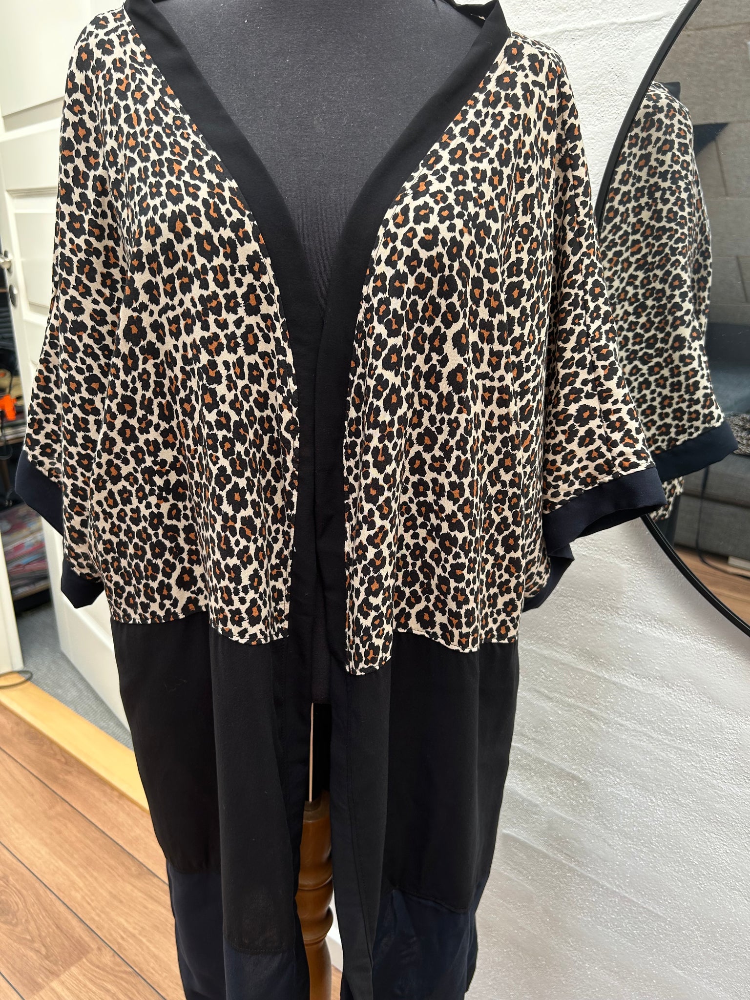 Kimono i dyreprint og blå viscose str.m/l