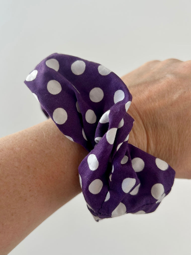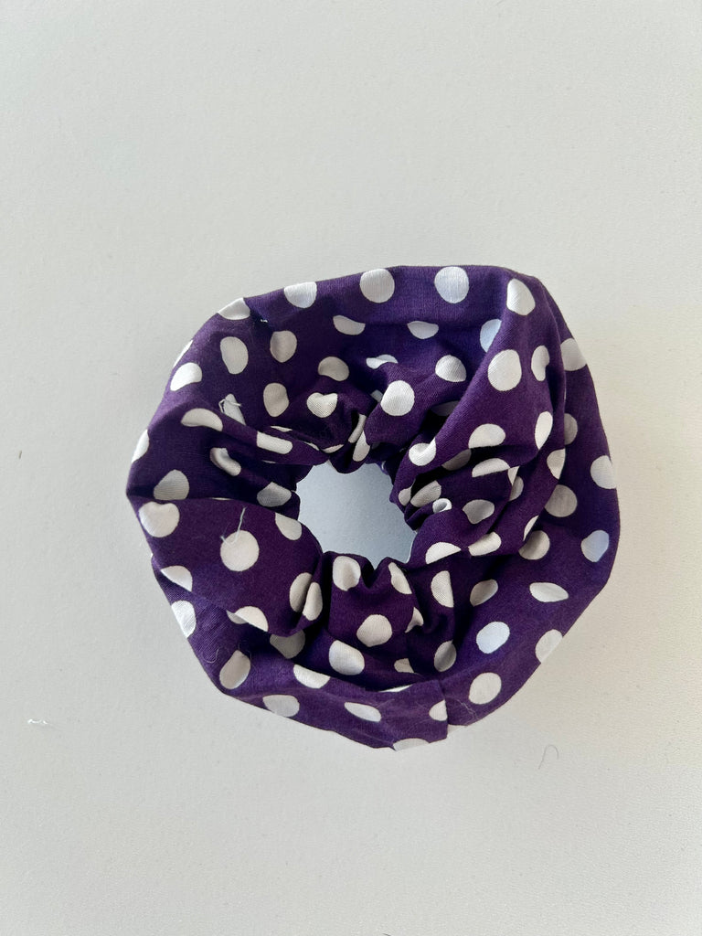 Storprikket scrunchie i bomuld.