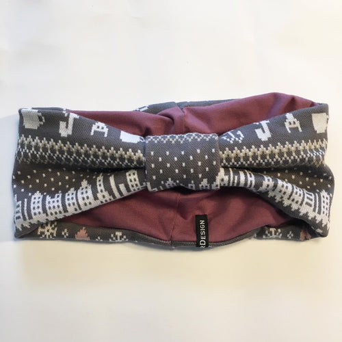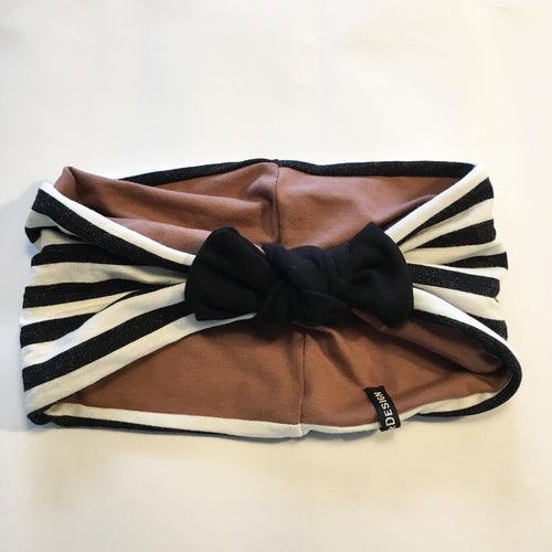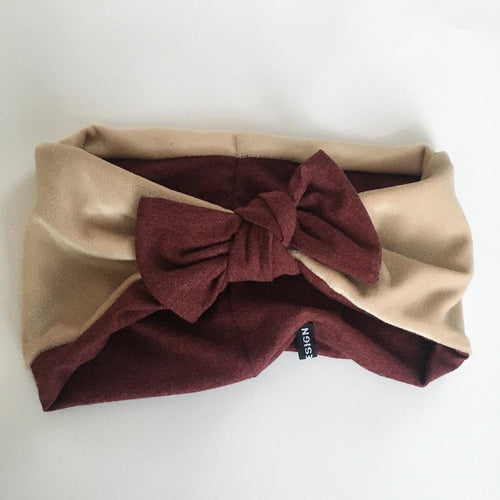 Pandebånd i bordeaux og beige Stretch med sløjfe