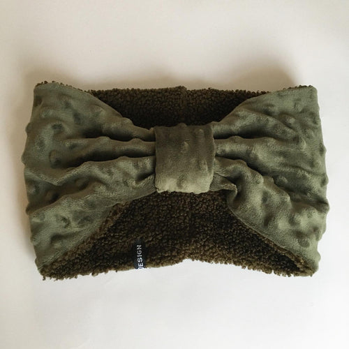 Bredt pandebånd i lækker blå/grøn farve og med mocca farvet jersey