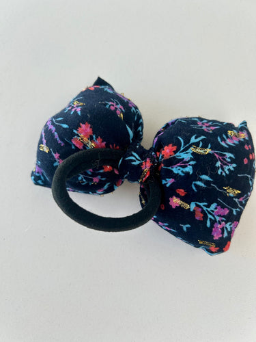Fluffy blomstret sløjfe i blålige farver.