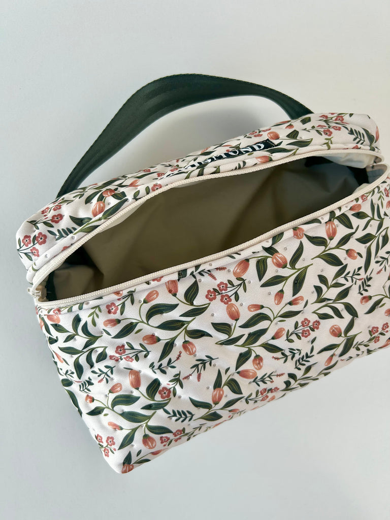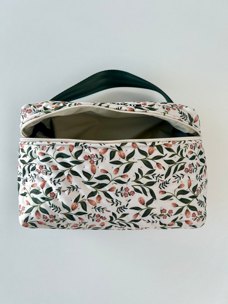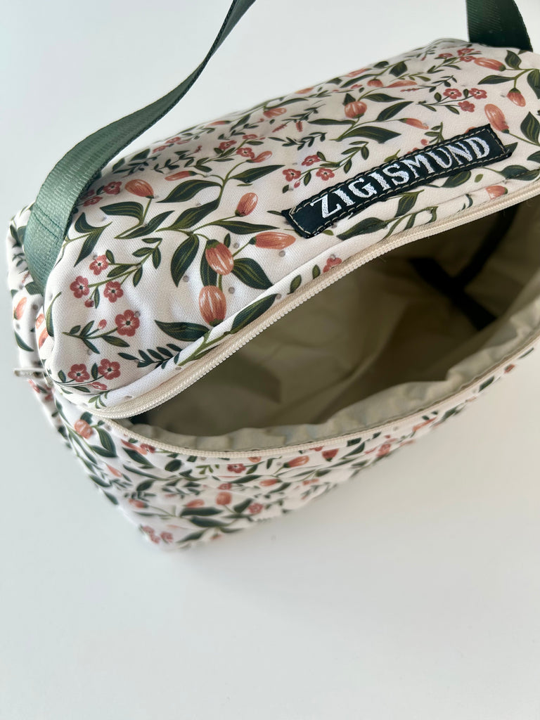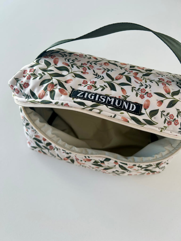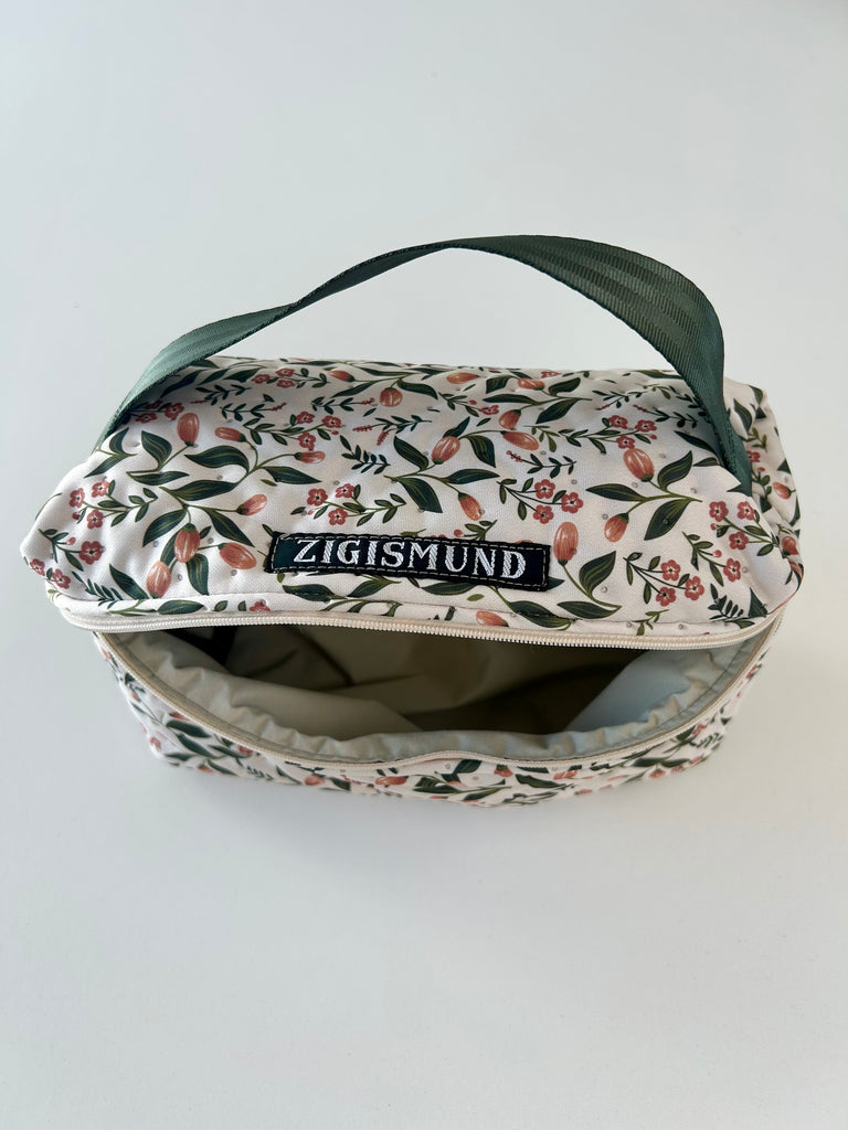 Lækker og rummelig toilettaske med skønne blomster.