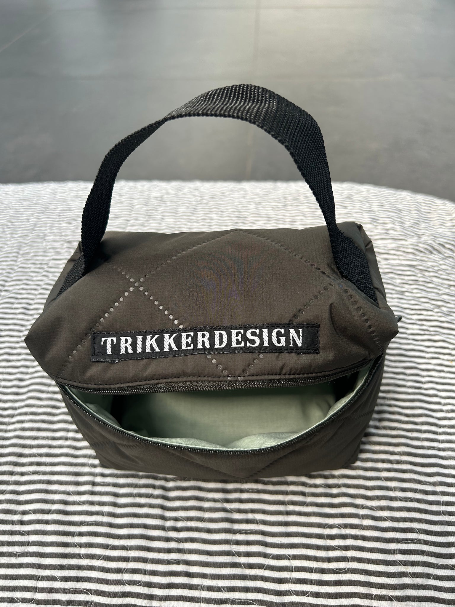 • Indlæs billede til gallerivisning Toilettaske/makeuptaske i army quilt.