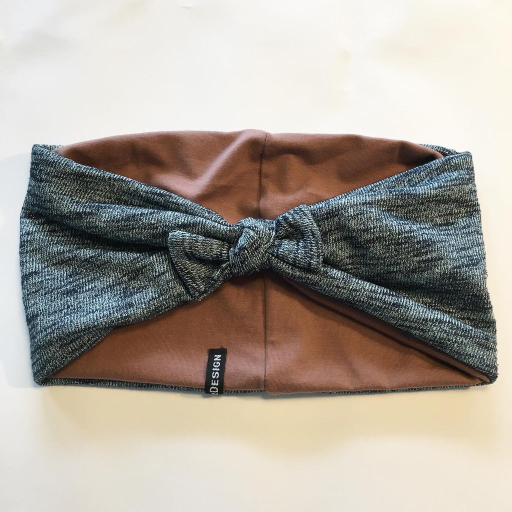Bredt pandebånd i meleret blå og med mocca farvet jersey